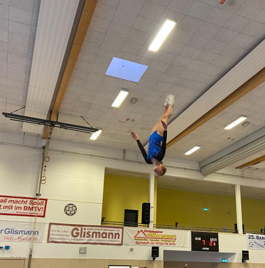 Der erste große Wettkampf führte die Trampoliner in den hohen Norden nach Schleswig Holstein zum Barmstedt-Cup- Mit über 300 Teilnehmern war der Wettkampf stark besucht. Gleich 80 Schülerinnen waren in der Gruppe der 10-11 Jährigen, darunter Lea Nolting vom TSV Bösingfeld. Für Lea war es der erste Wettkampf dieser Größenordnung. Um so erfreulicher die erbrachten Leistungen. Nach 2 guten Vorkampfübungen wurde der Finaldurchgang der besten Acht erreicht und mit dem 4. Platz erfolgreich abgeschlossen.